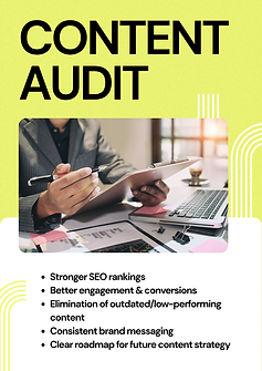 Content Audit – A complete review of your existing content to identify what’s working, what needs improvement, and how to optimize it for better performance.